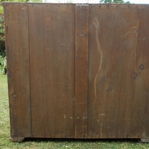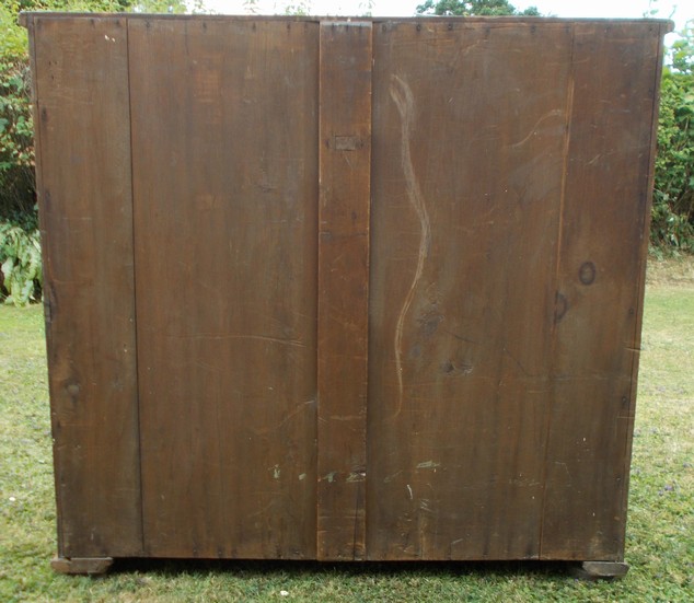 Lovely Victorian, large, chest of five drawers on small, turned bun feet. The wood between the drawers is bowed to make it look better than flush with the drawers as are the two side uprights. This has previously been stripped and revarnished so we have given it a clean up to the inside of the drawers and a good polish. Size 43.25ins. wide x 21.75ins. deep x 41ins. high. Stock no. 2299