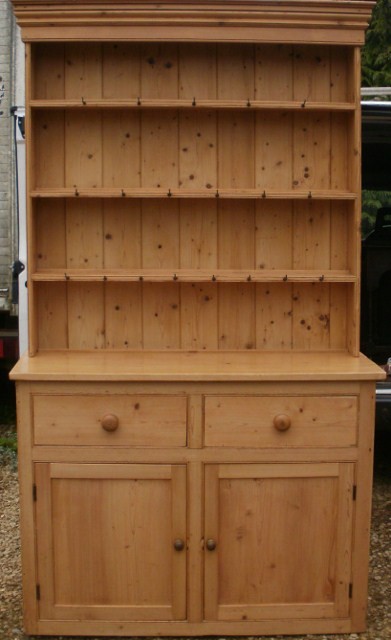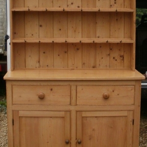 Lovely, clean, Victorian pine dresser with cup hooks on the fronts of the shelves. The base has a base shelf and a middle shelf that is not fixed