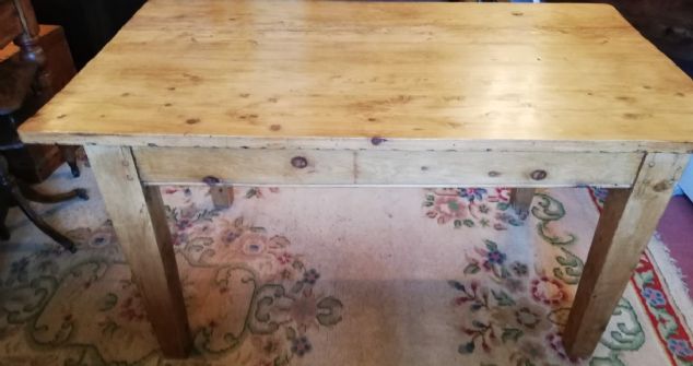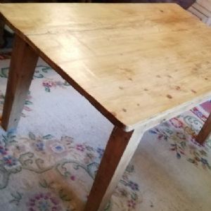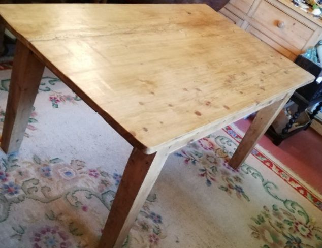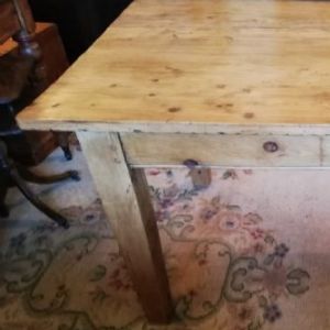 Antique pine table with square legs. Size 60ins. x 35.75ns. x 30.25ins. high (24.5ins. underneath). Stock no. 2324