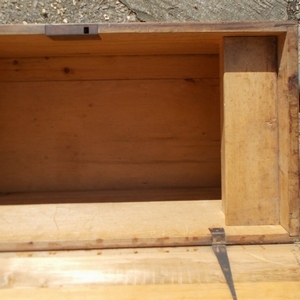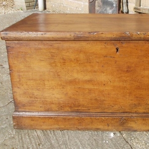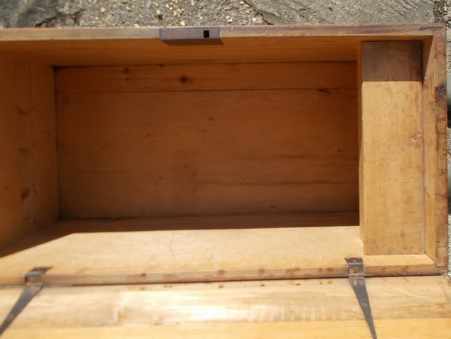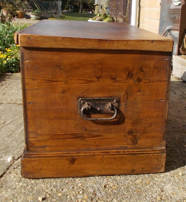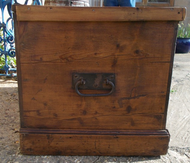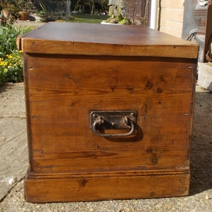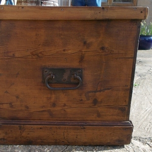 Victorian pine box with interior candle box and two good iron handles at each end. Size 36.5ins. wide x 18.25ins. deep x 17.25ins high. Stock no 2282